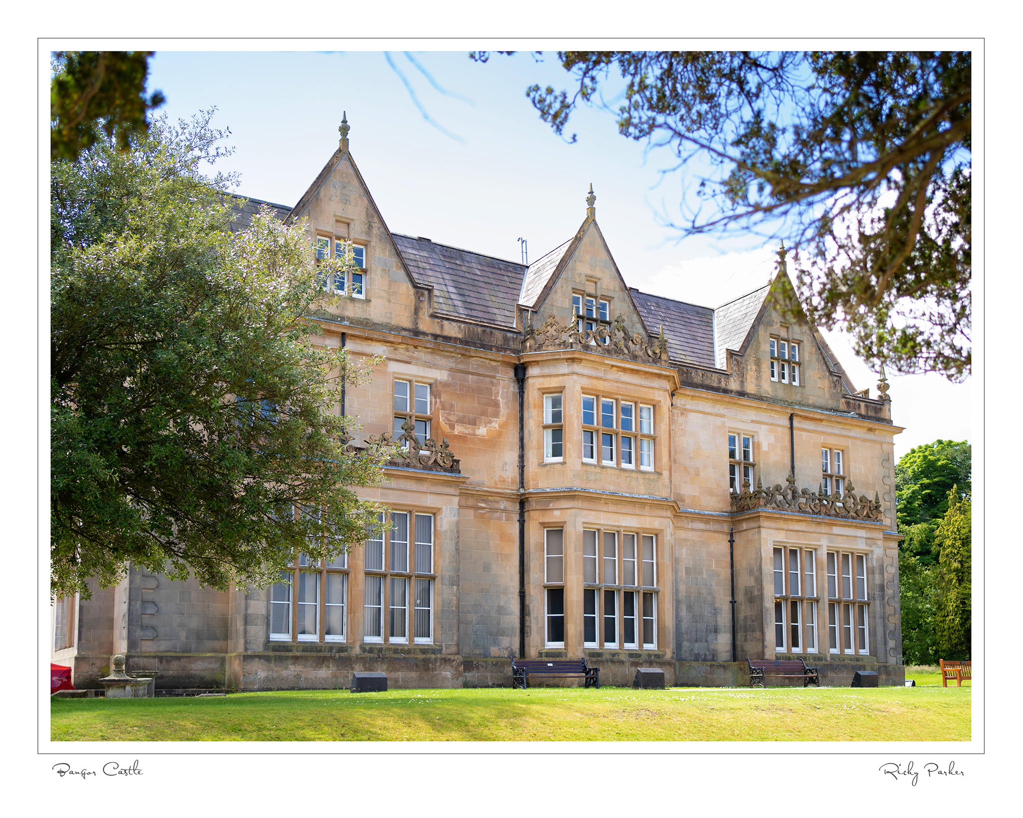 This photograph captures ‘Bangor Castle’ in Bangor, Co Down. Also known as Bangor Town Hall, or more recently Bangor City Hall after Bangor received ‘City status’